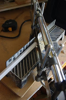 I wanted to jazz up the sides of the cabinet and the front of each shelf so I used my miter box to cut some molding.