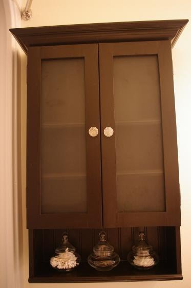 I have been lamenting the lack of storage in our upstairs bathroom for some time. I really wanted to buy some sort of wall cabinet that was dark in color, had frosted glass doors and was big enough to hold a good selection of necessities without being monstrous. And it couldn’t cost a small fortune. Yeah, good luck with that. So, me thinks, I could build one. Really, how hard could it be?